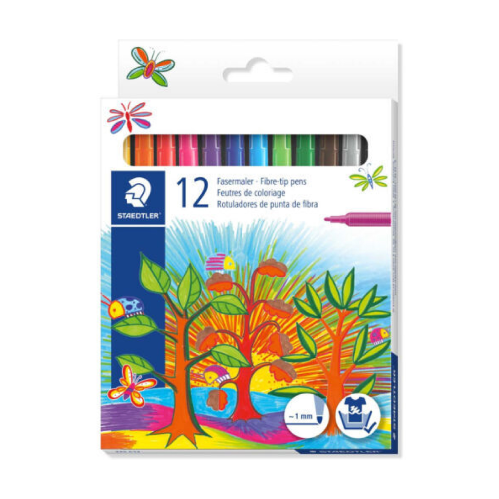 Lot de 12 feutres Staedtler avec une encre de qualité, garantissant une intensité de couleur exceptionnelle et une grande durabilité.