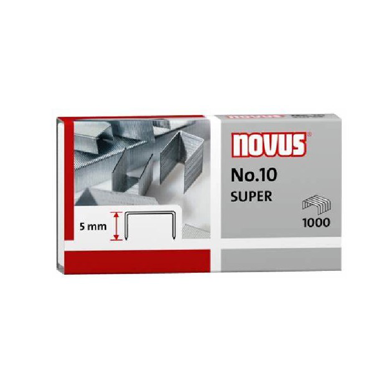 Boîte d’agrafes en métal de haute qualité, taille n°10, compatibles avec les agrafeuses de bureau standard de la marque Novus. Idéales pour un usage quotidien, assurent une fixation propre et solide des documents.