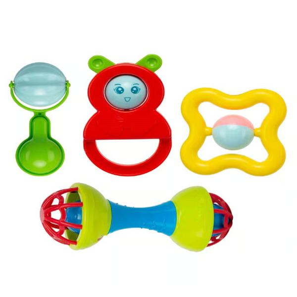 Set de Hochets Bébé – Série 4 Pièces | Ref. TOP1165-24Un coffret adorable de 4 hochets colorés, spécialement conçus pour les petites mains. Stimule les sens du bébé grâce à...