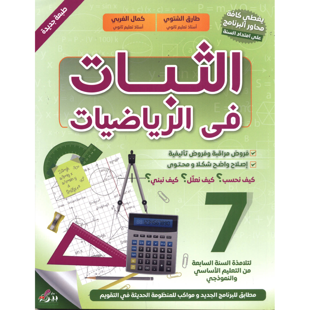 يهدف كتاب "الثبات في الرياضيات" للصف السابع إلى تعزيز الفهم الرياضي لدى الطلاب وتحسين مهاراتهم في مختلف مجالات الرياضيات. يتضمن الكتاب: